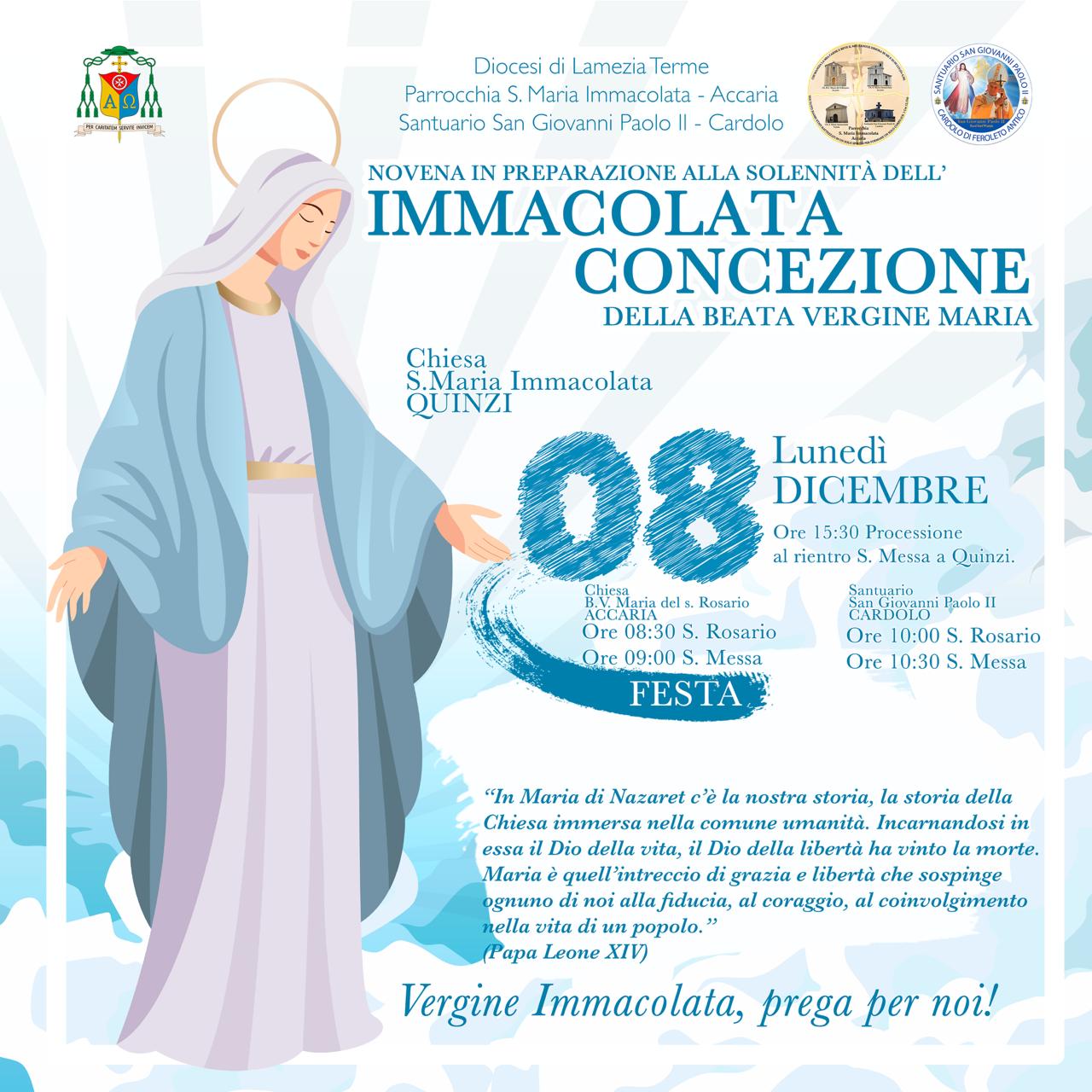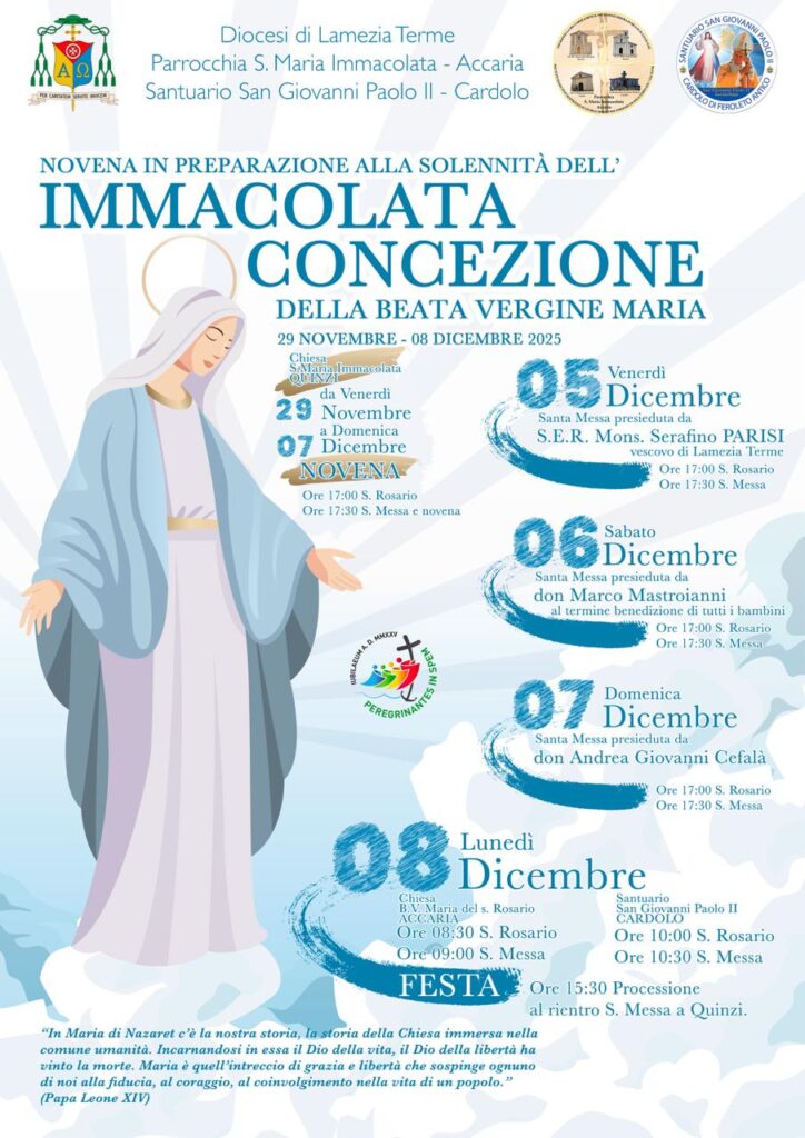La Parrocchia Santa Maria Immacolata di Accaria invita tutti i fedeli a partecipare con devozione alla novena e alle celebrazioni della festa patronale.